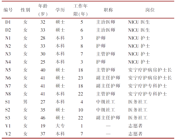 Li MT, Chen SH, Chen XF, et al. Qualitative research on the feeling and experience of medical staff on neonatal hospice care[J]. Chin J Nurs, 2022, 57(8):908-913.