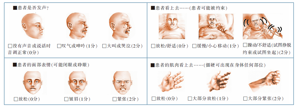 Chen J, Yang XH, Lu Q, et al. Reliability and validity of Chinese version of the Critical-Care Pain Observation Tool in non-intubated ICU patients[J]. Chin J Nurs, 2015, 50(9):1132-1136.